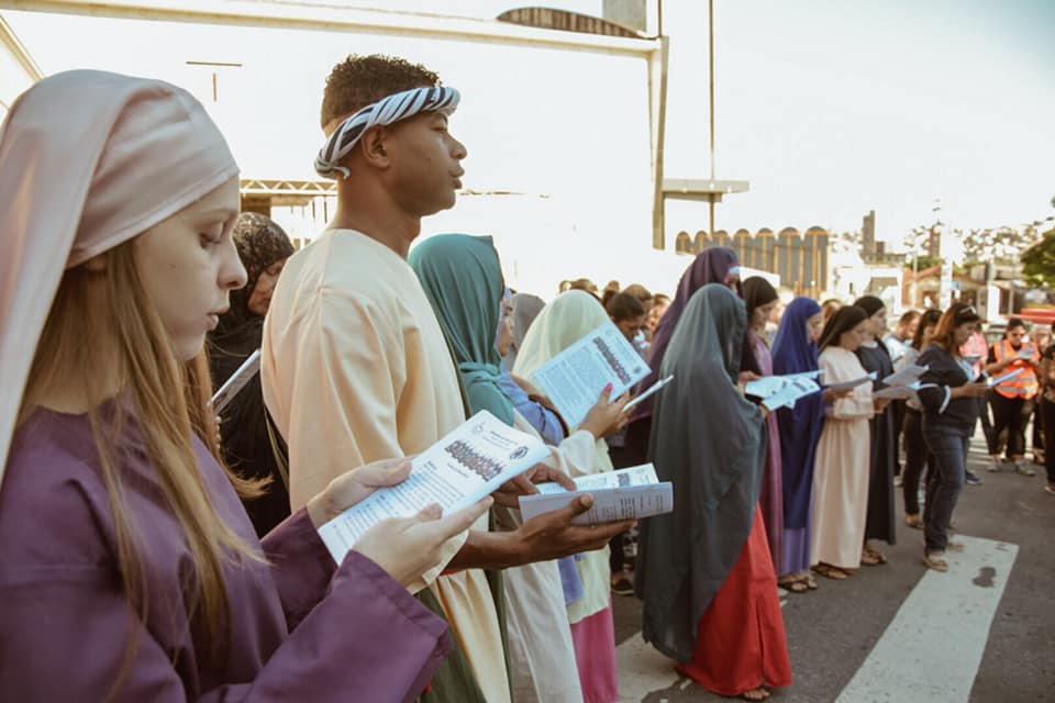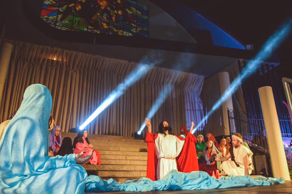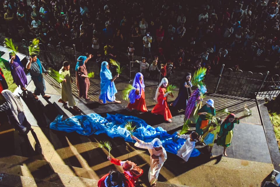 Buscando introduzir os fiéis no espírito coerente com o período litúrgico que se iniciara, nas primeiras horas da noite o Grupo Teatral São Paulo da Cruz reproduziu cenas da vida pública de Jesus até 'o cortejo triunfal que acompanhou o Salvador na sua entrada em Jerusalém' concluída com a Santa Missa da Juventude que contou com a presença de todos os movimentos Juvenis Paroquiais.